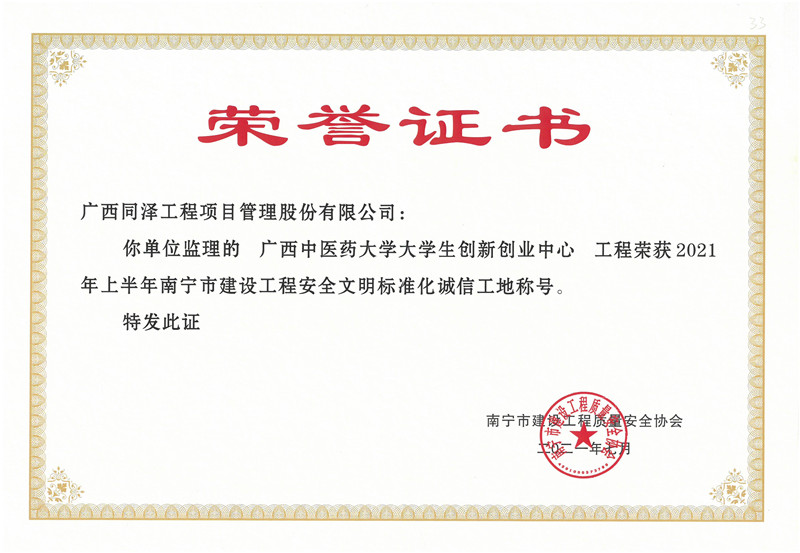 廣西中醫(yī)藥大學(xué)實訓(xùn)樓項目、大學(xué)生創(chuàng)新創(chuàng)業(yè)中心項目榮獲2021年度安全文明標(biāo)準化工地