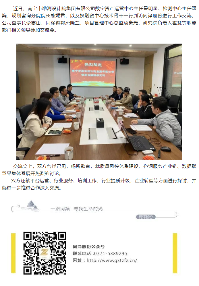 合作交流 | 南寧市勘測(cè)設(shè)計(jì)院集團(tuán)有限公司到訪(fǎng)同澤股份交流