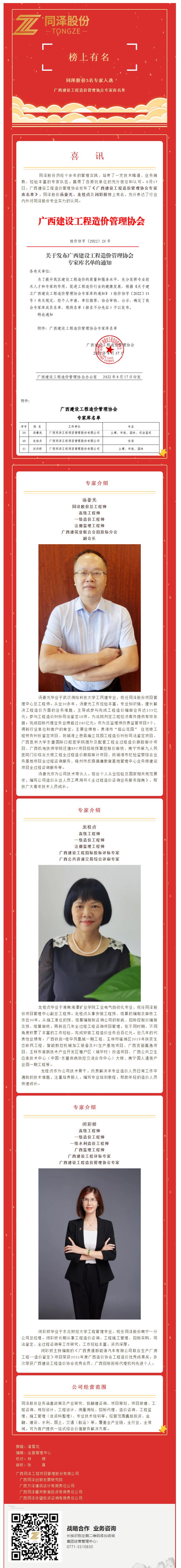 喜訊 | 同澤股份3名專家入選廣西建設(shè)工程造價管理協(xié)會專家?guī)烀麊?/h2>